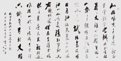 童式书法,诸体兼善,重韵尚法,阴阳和谐。在章法上,谋篇布局,计白当黑,疏朗有致,聚散舒适,规范得体,大小错落,浓淡相宜;在笔法上,奇正结合,中锋用笔,刚柔相济,提按娴熟,使转自然,笔意潇洒,点如坠石,横如阵云,折勾如戟,或“锥划沙”,或“屋漏痕”或“折钗股”;在墨法上,干湿自然,浓淡结合。