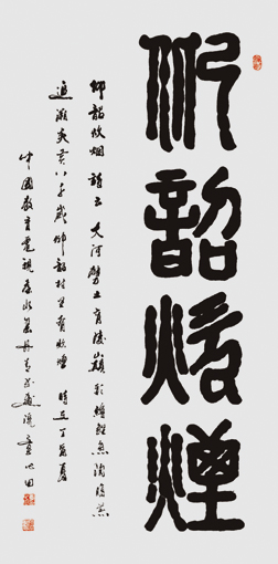 童老师书法诸体兼善,重韵尚法,以行草见长;国家邮政局将其书法印成邮票,明信片,充值卡,全国公开发行;国家版权保护中心批复其书法为童式书法,并给以专利保护;国家外交部驻外机构聘请其为国礼艺术大师,将其书法定为国礼作品,并授予中华文化大使荣誉称号;中国艺术设计策划中心,授予民间艺术大师称号;中国新长城组委会将童式书法镌刻在八达岭长城上;出版书画评论著作12部、300多万字。
