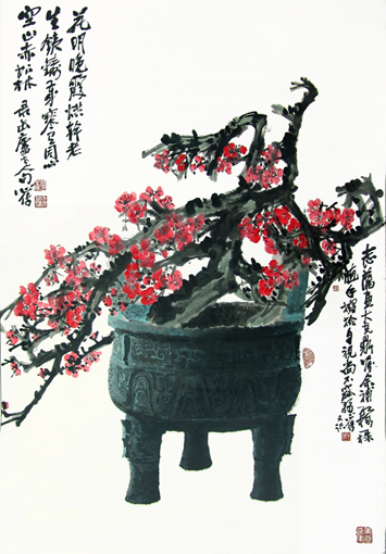 林治杉,为林心传之子,青铜器画名家,专以青铜器画与其父的吴派大写意相配合。幼年即随父学习绘画。上世纪七十年代开始系统钻研青铜器画法,吸取了传统颖拓、随形拓、素描、摄影、雕刻以及西方“超级现实主义”绘画、3D等诸方面的手法,各取所需之可用部分整合一处,反复钻研试验,通过经年的摸索实践,终于形成了自己的独特面貌。其作品的艺术特色,厚重庄严,古意盎然,将古青铜器的造型及神韵淋漓尽致地表现出来,仿佛一尊尊远古的青铜器穿越时空来到画面上,气势恢弘,具有极强的视觉冲击力。再配以乃父吴派大写意粗旷、飘逸的红花绿叶,一动一静相互衬托,相得益彰,达到了绝佳的艺术效果,令人印象深刻,流连忘返。作品及介绍刊载于《中国书画收藏》杂志、《中国书画名家大师画典》、《中国名花名家艺术大观》、《中国当代书画艺术家传世名典》等。