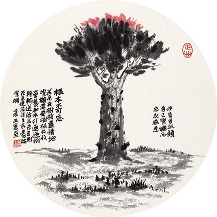 根本不可忘 花朵在树梢尽情地灿烂,需要树根吸收营养和水分,通过树干输送给花朵。