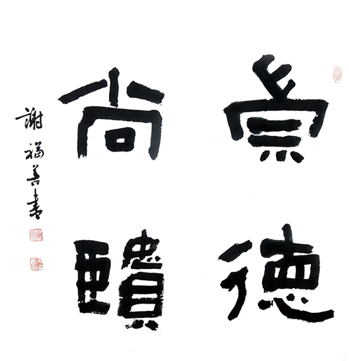 谢福善,笔名绍辉,号鹤瓮,三乐斋主,1946年生,甘肃甘谷县人,中学教师(已退休)大专文化。中国书画函授大学毕业,中国书法家协会研修班结业生,2015年5月进修于中书协培训中心钱松君导师工作室学习。现为中国书法家协会会员,甘肃省书法家协会会员,天水市书协隶书专业委员会委员,甘谷县书协顾问。