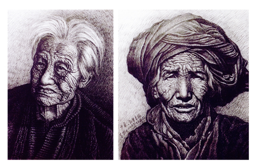 母亲(系列之一)钢笔素描 53cmx39cm2018年母亲(系列之二钢笔素描46cmx39cm2018年