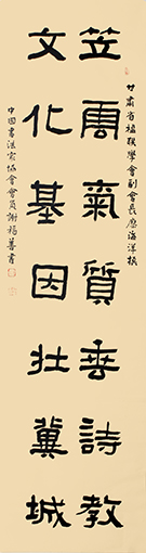 谢福善,笔名绍辉,号鹤瓮,三乐斋主,1946年生,甘肃甘谷人,中学退休教师,大专文凭。中国书画函授大学毕业,师承翟万益。受著名书法家刘文华,张继等名家的指导。中国书法家协会研修班结业,2012年5月进修于中国书协培训中心导师钱松君工作室学习。现为中国书法家协会会员,天水市书协隶书专业委员会委员,甘谷县书协顾问。