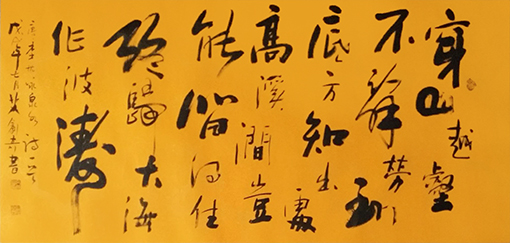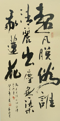 2008年由公务员退居归田,自费参加北京权威部门书法进修,其间一个背包走遍祖国大山名川,吸山水之灵性,赏民间之精华,伴松竹寒窗苦练,访名师克已之短。将性格融入笔划,用灵感成就章法,笔走龙蛇自由奔放,似行云流水无矫揉造作,无羁绊迟疑,将个性张扬得如脱缰骏马,把气势发挥得似飞瀑流泉。柔绵处有如渔舟唱晚,激情时婉似拍案惊涛。在丑书怪书横行之时,宁可忍心自焚作品,决不向媚俗低头;宁可在柴房与农夫沽劣酒,决不向权贵献殷勤。低调的为人,简朴的生活,良好的心态在书法作品里体现出质朴自然的美,没有任何粉饰,轻描淡写中一幅幅带着泥土草根味的作品跃墙上壁,熠熠生辉,行家肯首,百姓欢呼,在当地已是一字难求。有其说一生在演奏书法进行曲,不如说一生在演示着人性的认知,灵魂的洗涤,生命的升华!