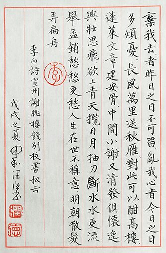 李润德,字中和,号红叶居士,1951年生,山西太家人,书法本科。国家一级书法师,中南海国礼艺术中心聘为国礼艺术家。自幼学书,天资悟性,专研书法,以古代名师为宗, 遍临名帖名碑,出入规矩,综合变通,取法技巧,善于变化,采百花之精,酿自己之蜜。行成其独特的书法论点。学书五要素 : 1. 天资悟性。2. 临摹古站 .3. 精学笔法。4. 精研结体。5. 勤学苦练。创作书法五要素 : 1、笔法精美。2、结字巧妙。3. 善用墨法。4、技高一筹。5. 气贯章法。其书法作品在国内外众多大赛获奖并收藏。