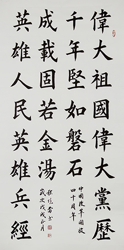 嵇境雷作品《伟大祖国伟大党历千年坚如磐石、英雄人民英雄兵经承载固若金汤》规格:138cmx70cm
