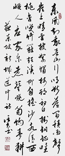 自幼酷爱书法艺术,初学欧、严、柳、赵、智永楷书,继而攻行草书,师从王羲之“聖教序集字帖”“兰亭序”米芾、黄庭坚、李北海行书,隶篆也曾涉足;中年以后行书专修文征明作品,至今临池不绝,其他古今各大家作品也经常苦心研习,传统功底坚实、深厚,作品用笔流畅、自然、法度规范、古朴凝重。作品曾入展蚌埠市历届书展,曾入选安徽省新人作品展,并多次参加全国各地的书法活动。作品多次作为礼品馈赠美国英国及港澳台友人,2008年北京奥运会期间曾应邀为亚洲、非洲及我国港澳台百名运动员书写汉字姓名并被收藏。书法作品曾先后刋登在省内外报纸和其他刊物上,并多次参加省和国家级专业性展览,均受到好评。