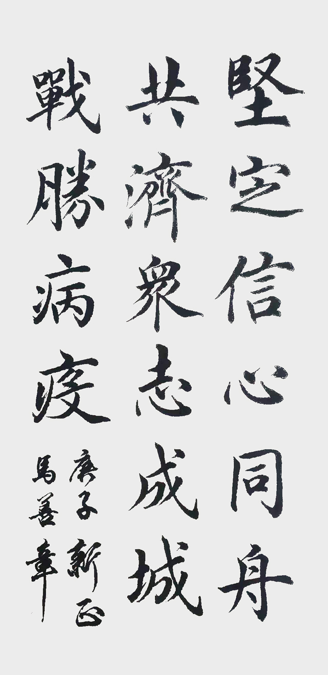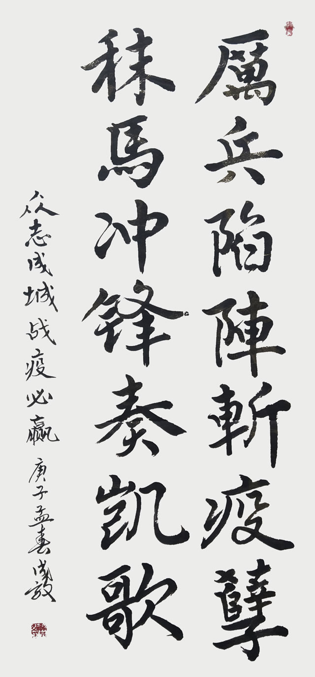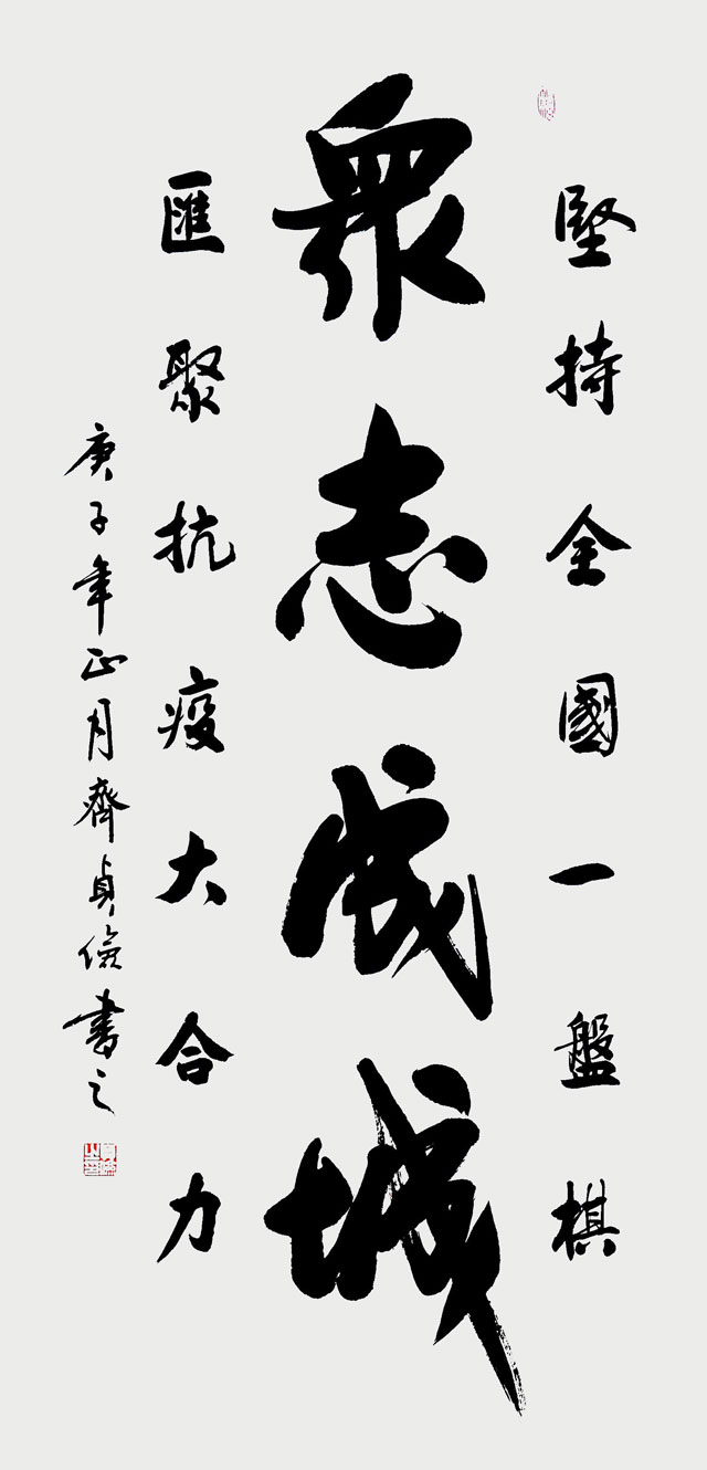 孙成效作品《众志成城 战疫必赢》规格:138cm×69cm