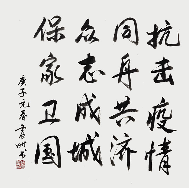 徐震时作品《抗击疫情 同舟共济 众志成城 保家卫国》规格:66cm×66cm