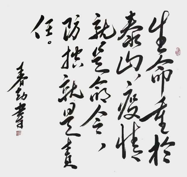 范春勤作品《生命重于泰山 疫情就是命令 防控就是责任》规格:四尺斗方