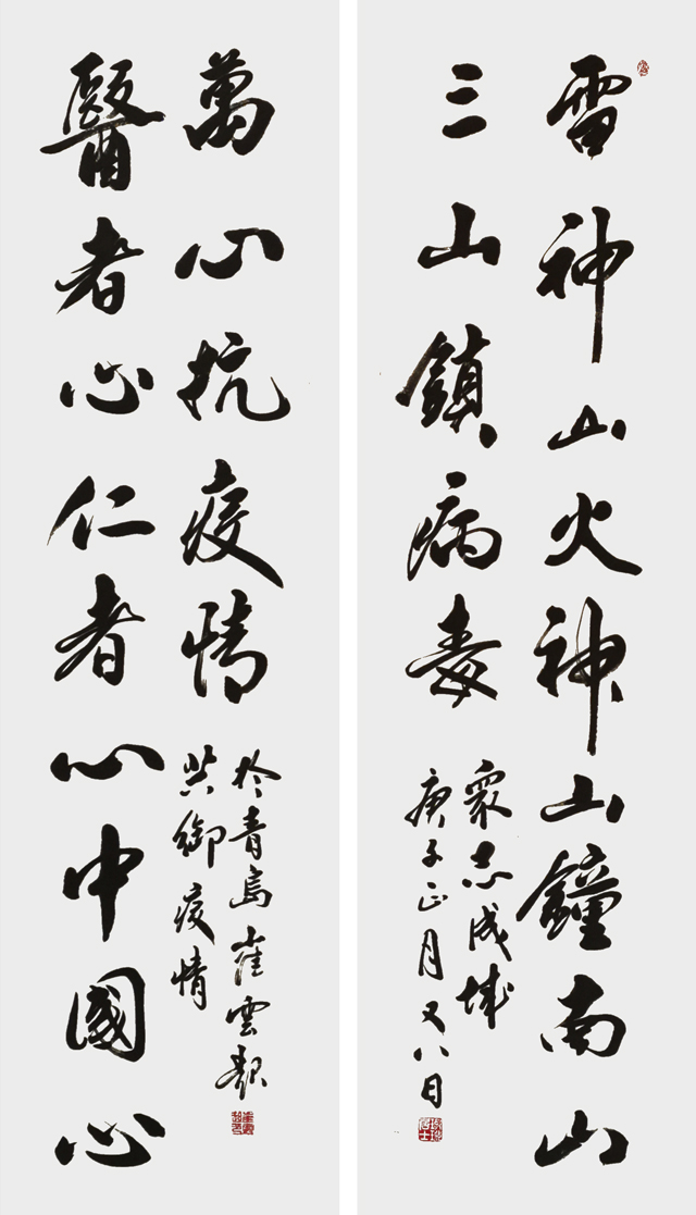 崔焕臻作品《雷神山火神山钟南山三山镇病毒,医者心仁者心中国心万心抗疫情》