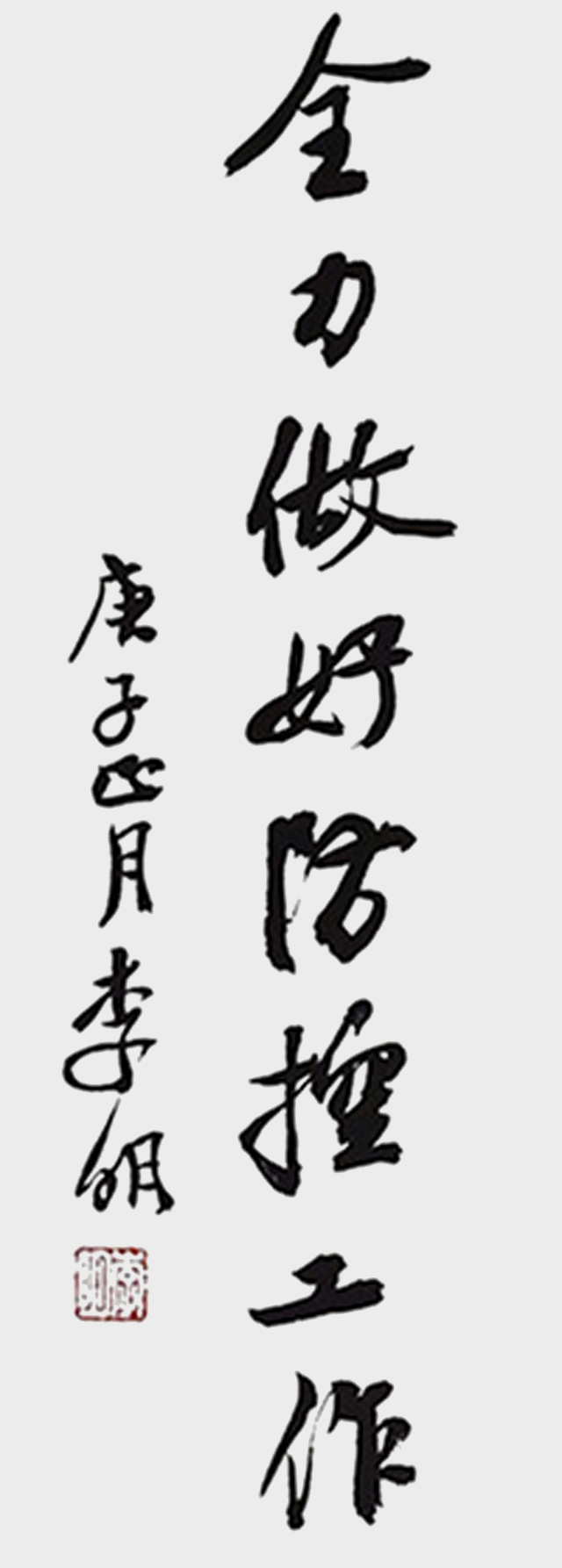 翟卫东作品《天佑中华 众志成城千里整装驰武汉,全民出手九州奋力送瘟神》规格:180cm×60cm