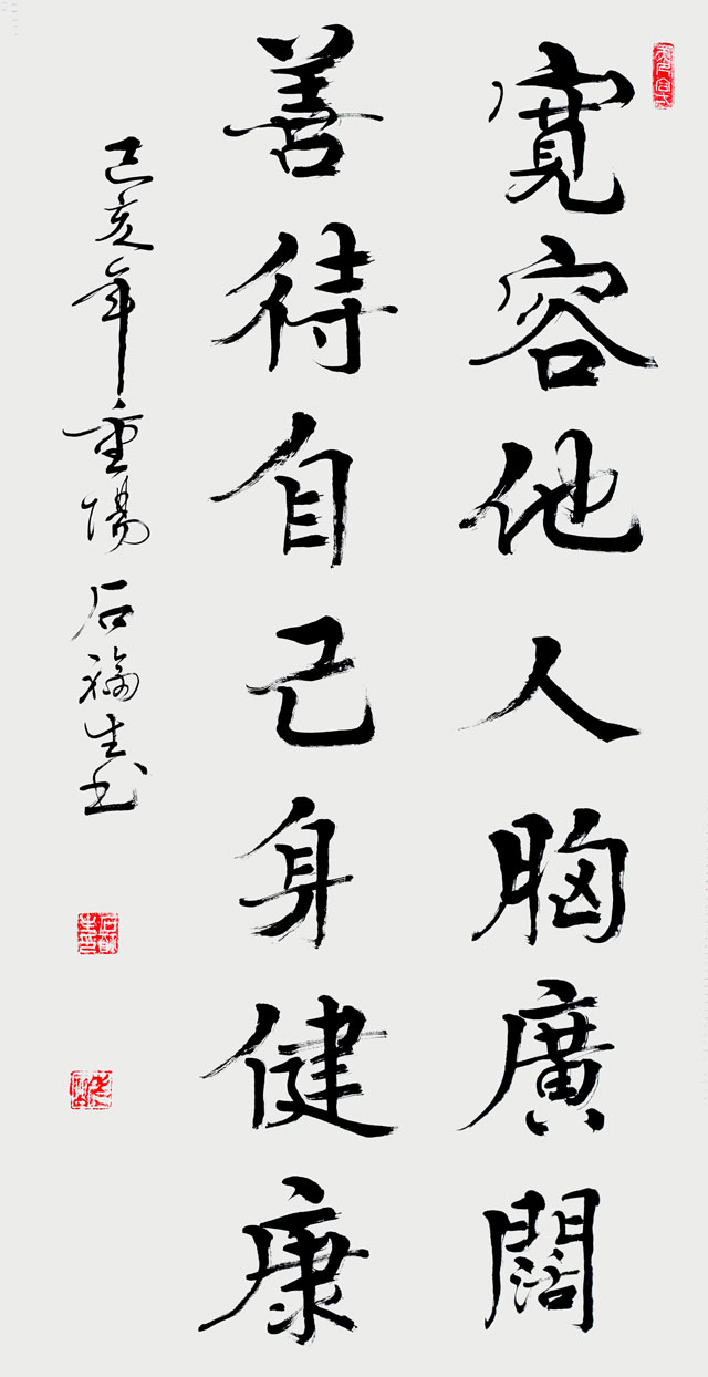石福生作品《宽容他人胸广阔,善待自己身健康》