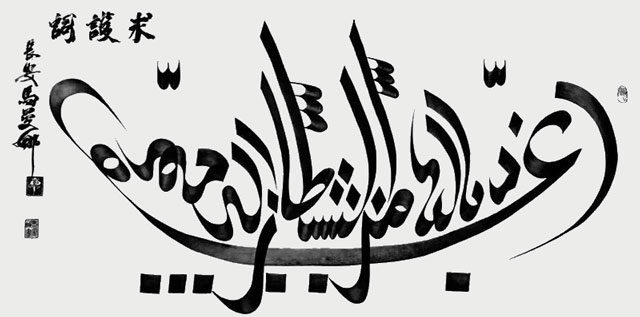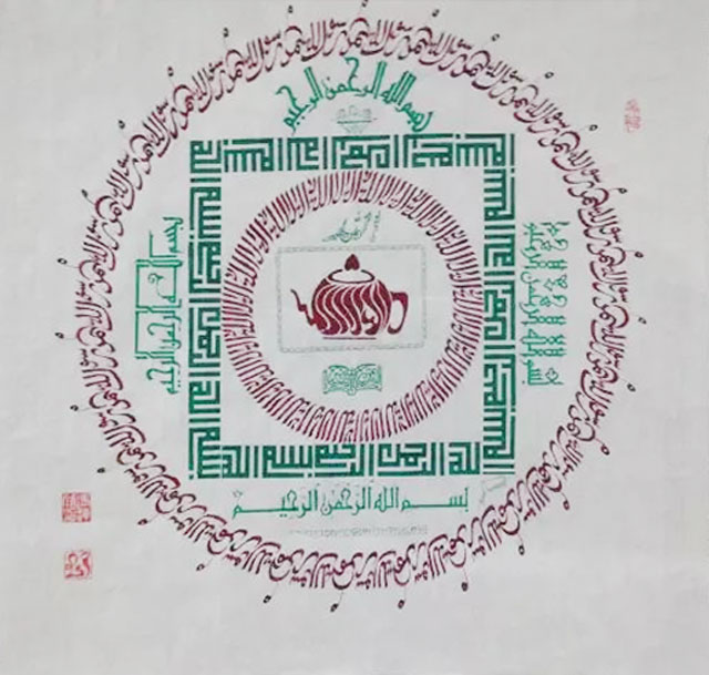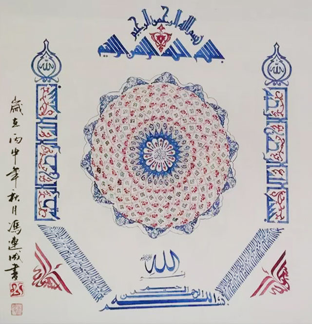 马云亭阿訇在传统阿文书法创作中,加入了中国绘画中粉彩和工笔画的部分技法,对传统阿文书法创作的典型图样加以扩充,创作出与众不同的作品,受到国内外阿文书法界的文化研究者的高度赞扬!