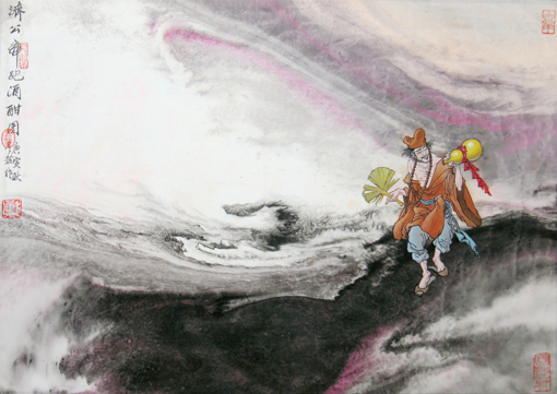 《济公虎跑酒酣图》董文政当代帛画