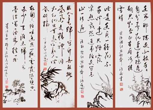 季鸿雁作品6《梅兰竹菊》四条屏