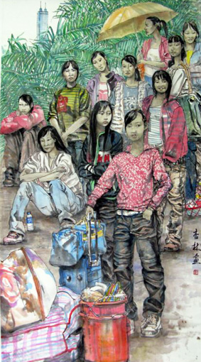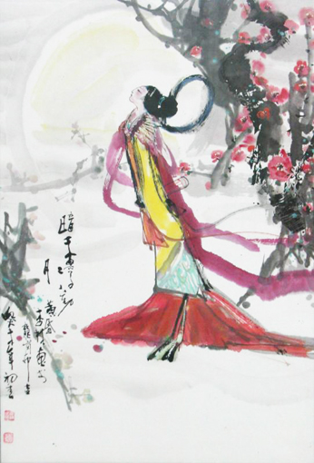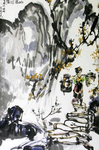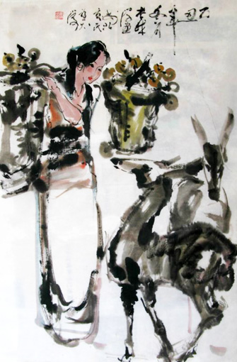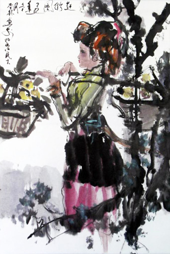 国画人物《水乡情》《少女与鸽子》《农家乐》《情趣》《南下寻梦》《中华儿女》;