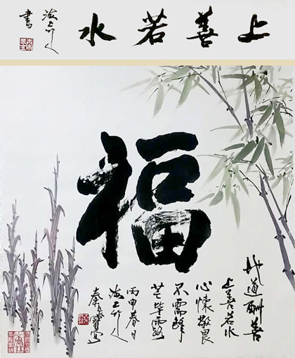 秦长宝作品《福祉祥和》137cm×67cm 福祉祥和、七彩人生