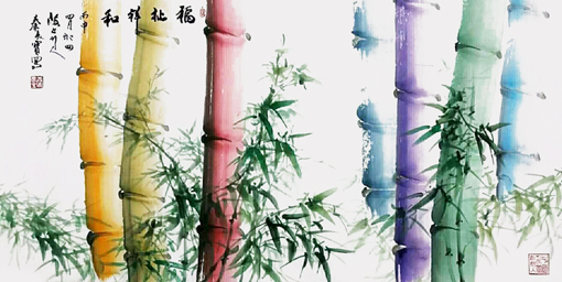 《彩竹藏宝》藏彩竹品牌七绝诗意。根据诗意作发挥读竹感悟。
