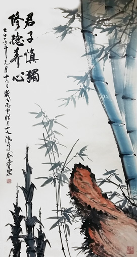 秦长宝,1955年出生于上海,号:竹痴、海上竹人。中国当代国画彩竹创始人。以山为师,以竹为伴,集吴镇、徐渭、八大山人,石涛“法自我立”“笔墨当随时代”等名家之精华。首创中国画“彩竹”身份,墨竹以毛竹为主,主张光威透视,具象意象结合、自成一家。师从吕业翔先生,法悟“轻迹象而尚精神,薄宗工而重书味”,从此展开了秦长宝先生的彩竹世界,得到了张桂铭、赵冷月、万簌鸣、苏局仙、徐北汀、朱子鹤等老师赐教。