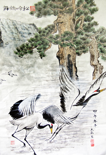 《松吟鹤舞》68厘米×100厘米