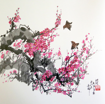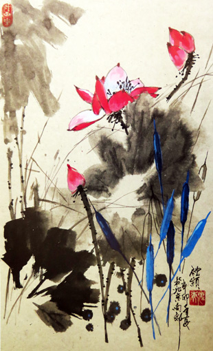 近年来更多在写意花鸟的创作,并从中创出自己的特色。