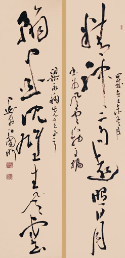 狂草楹联《精神高远照日月·翰墨沉雄生风雷》