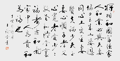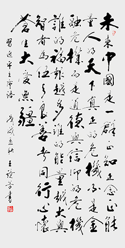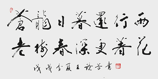 2018年6月29日,在四川宜宾李庄参加书画名家共庆改革开放40周年暨第二届“古建与书画之美”优秀作品展,代表书画界作了发言,期间在现场以及企业界作了书艺互动交流,突显出书艺实力,作品劲逸、健美、潇洒、飞动。