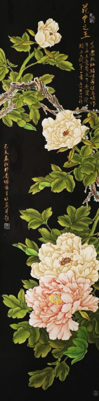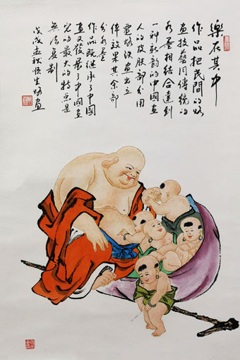 独特的宣纸烙画作品《五行中国画》 把几千年的民间烙画技艺与岭南水墨同宣纸结合在一起达一种新韵的中国画,人物画中,人的皮肤部分运用了烙画技艺完成(就是用电烙铁在宣纸上烫出素描立体效果),其余部分运用岭南水墨,它具备了五行,金、木、水、火、土,电烙铁为金,宣纸为木,水墨为水,烙铁发热为火,颜料印泥为土,这种作品具有一定的灵气,它既继承了中国画又发展了中国画,它既有传统中国画水墨的韵味,又有西洋画立体感觉,它的最大特点是无法仿制、环保,具有一定的收藏价值。
