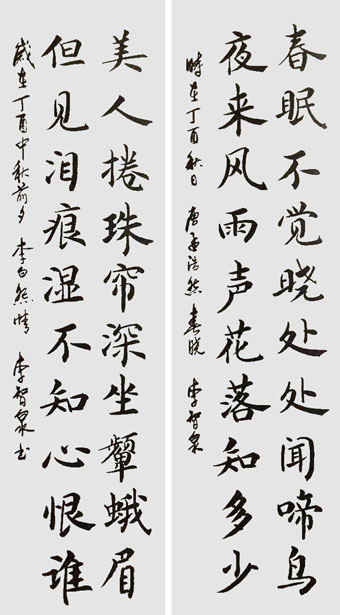李智泉老师几十年如一日,遍临汉碑、唐楷及今名家碑帖。擅隶书、楷书、工笔画等。多次荣获国内省市一、二等奖。绘画以工笔仕女为主,兼画花鸟、山水等题材。创作作品多被国内外、个人、企业及院校机构收藏。
