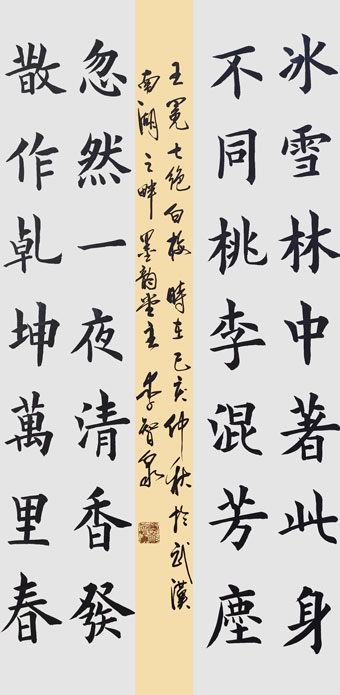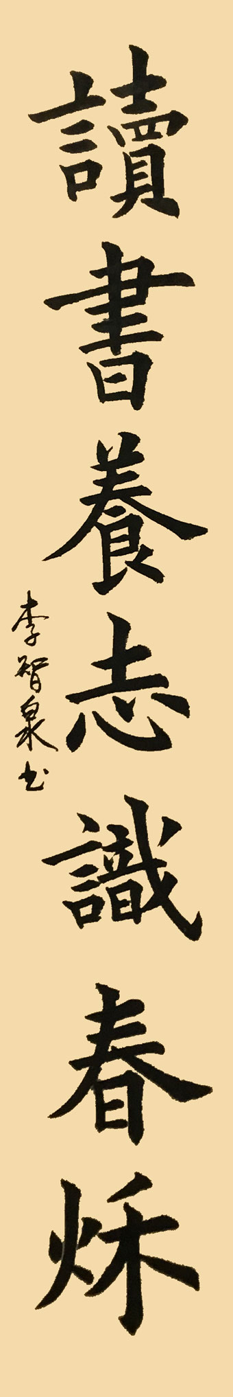 李智泉,1962年生于河南光州,字墨之韵,号江淮墨客。现为中国楹联学会会员,中国教育电视台《水墨丹青栏目》《名家讲堂》签约艺术家、中国世纪大采风书画院院士兼副院长,国家一级书画师,中国民族建筑研究会书画艺术专业委员会理事、客座教授,头条认证、火里小视频认证书法师。毕业于解放军艺术学院。自幼聪颖善学,拜名师数位,勤学苦练书法与绘画,先后在上海、信阳、温州从事书画工作。2008年以后,在武汉市洪山区华中师范大学家属区做书画培训至今,兼书城路社区文化空间书画指导老师。