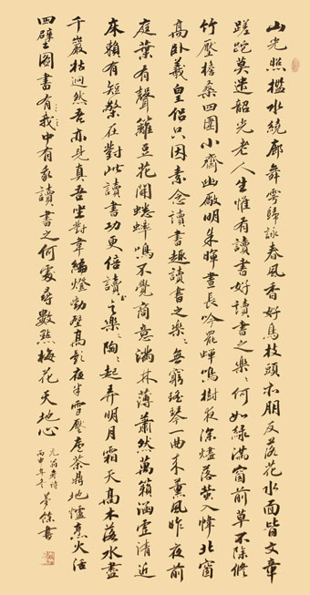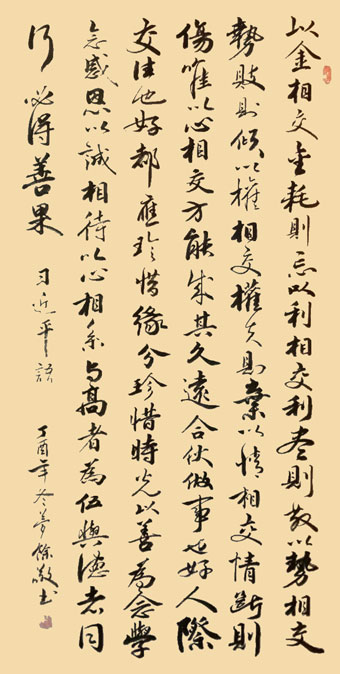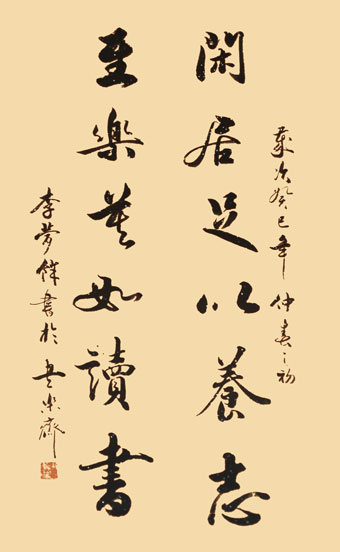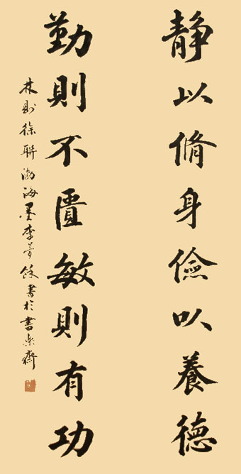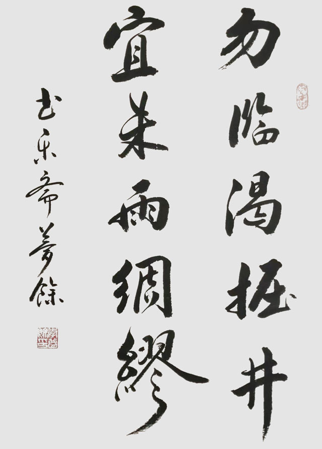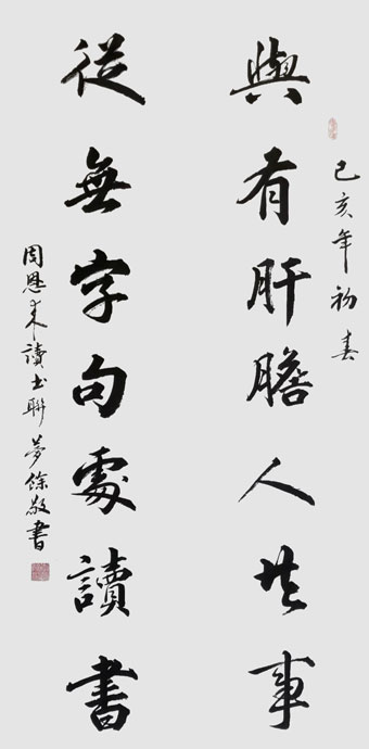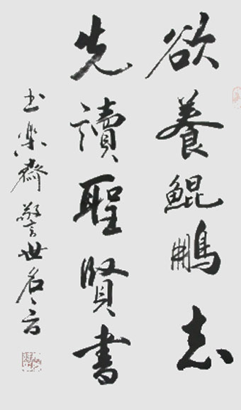 以碑贴为师,从《玄秘塔》《多宝塔》开始,后习二王《黄庭经》《洛神赋》钟情《兰亭序》,笔耕不辍,临池不懈。对传统笔墨技巧,博采众长,兼收并蓄。师从著名书法家祥隶大师王祥之老师,经点拨得其意。擅长楷书、行书、草书、楷书,端庄秀丽,笔力遒劲;行书,清秀隽永,淡雅宁静,刚柔相济,有太极行书之誉;草书,潇洒飘逸,萦带连绵,天趣盎然,有高山流水,自然之美。提倡学书为乐,号为“书乐斋主人”“渤海墨”。崇尚传统书法,师古不泥,大胆创新,作品雅俗共赏,为广大群众所喜爱。