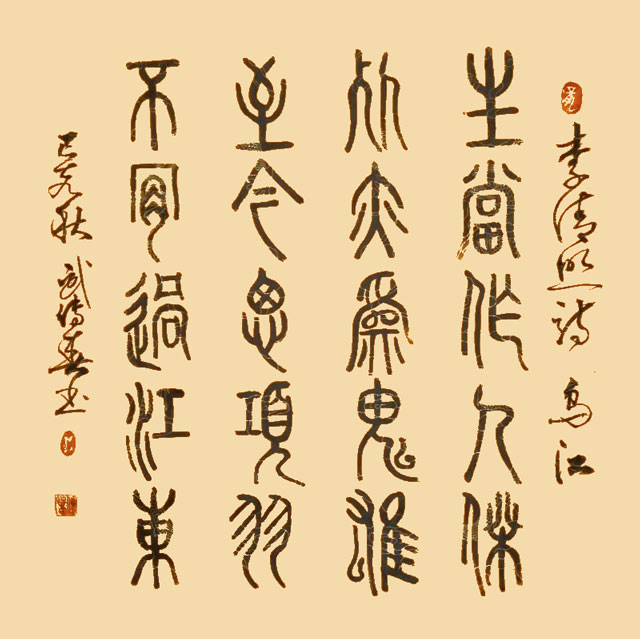 武传春作为学院派书法家,有着较深厚的文化底蕴和艺术造诣。他对中国历史、中国传统文化、中国书法史、中国古文字起源、考释以及文字的演化过程都有着较深入的研究。