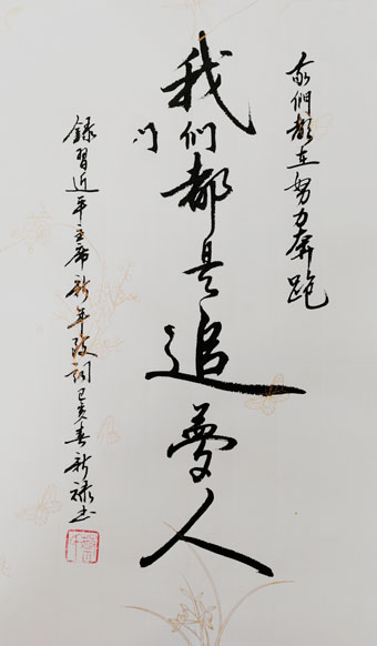 “旧时王谢堂前燕,飞入寻常百姓家。”蔡新禄最大的心愿就是希望他的作品不是高高挂在展会上,而是像燕子一样飞入千家万户的寻常百姓的家里,为人们奉上书法文化与艺术的美!