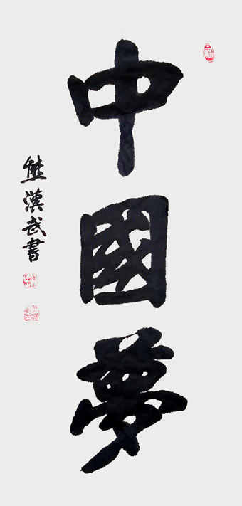 中国美术家协会主席范迪安,中国政协委员、中国书法家协会主席苏士澍作为推荐人,由“中美建交四十周年”艺术展组委会申报,中华人民共和国文化和旅游部批准,并请德高望重的中国书法教育家欧阳中石大师题写了《中国文化形象大使》,连同熊汉武先生的书法作品一并镌刻于精美礼品上赠送给中美政要。著名书法教育家欧阳中石大师评熊汉武作品时称赞说,其作品苍劲有力,气度非凡,美不胜收。有滚滚风云一泻千里之势,可谓当代一代书法大家。