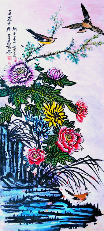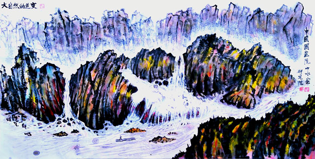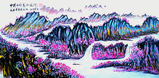 因景至情写磅礴,气韵生动立境界。先生不但精通摄神的山水创作,也有独立面目的花鸟神通。法取海派之法,浓墨重彩写意花鸟,有着把笔墨技法境化成从情感气格的塑造力。忠于写生,挖掘花鸟创作精神审美的深层次,画与自然相伴,笔墨合天道,一幅花鸟就是主观思想与客观世界的对流映像,在笔墨的潜移默化中,形成花鸟的像真神妙。情操为之陶冶,心灵为之渡化。品位高远,画为立德,大家修行,皆谓如此!