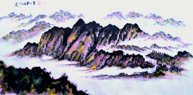 从绘画修养的层面来讲,周宣成先生的丹青创作不是追功名,也不是逐浮利的价值观,而是移情于景、陶冶身心的修养之助。他在用丹青陶冶自我身心的同时,也成为引领观赏者走进心驻清凉的人文导师!用墨与彩的交融意象,把观赏者带进身临其境的山水空间,体察青绿之风,心怡唯美之情,这种引人卧游的山水意象,令人情绪放松,是心灵无碍的良师与良修,极达畅神之途,可以寄情,也可以钟情,在烟岚浩荡中拥有独与天地精神往来的哲学体念!境界非凡,功在畅神。