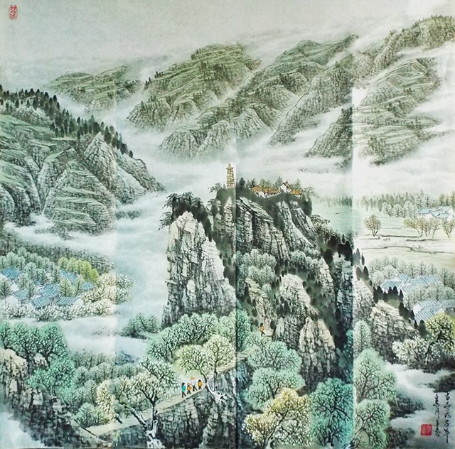 赵金惠,1945年出生于陕西陇县农村,从小喜爱绘画。几十年来,注重传统绘画技法,追求时代气息,采众家之长。以本地山川为对象,展现了国家改革开放三十年有目共睹的建设成果。中国画以水墨、色彩技法为创作主调,要把这种技艺变成家乡的山水风貌,成为人们一看就懂的画面,是其一直研究追求的主题,经多年的创作实践,体会到要走出自己的路子是多么艰难。