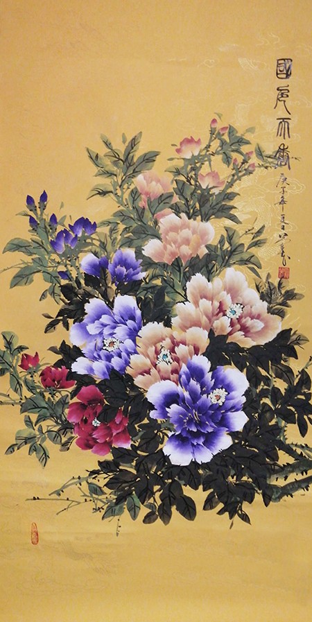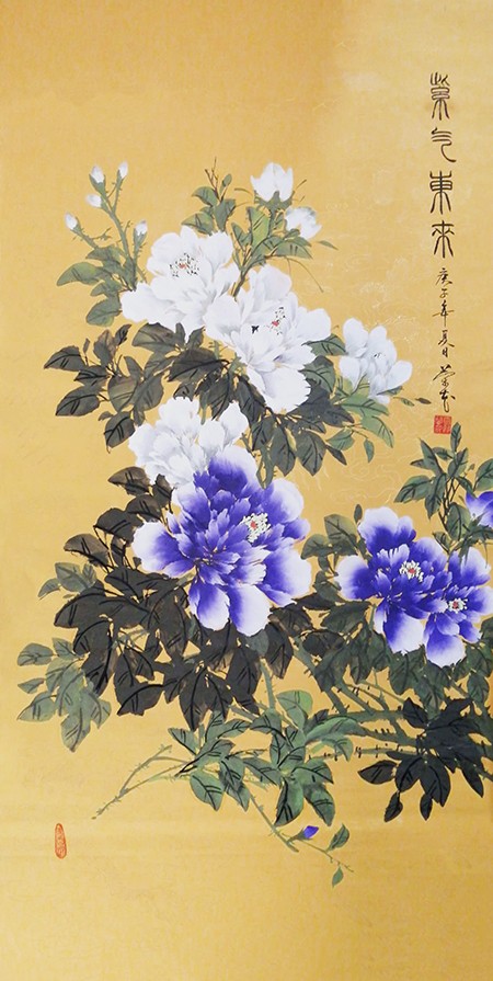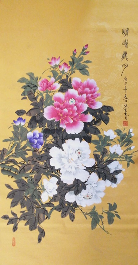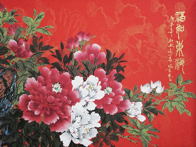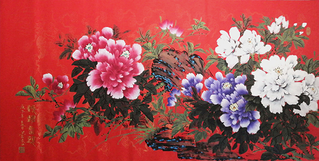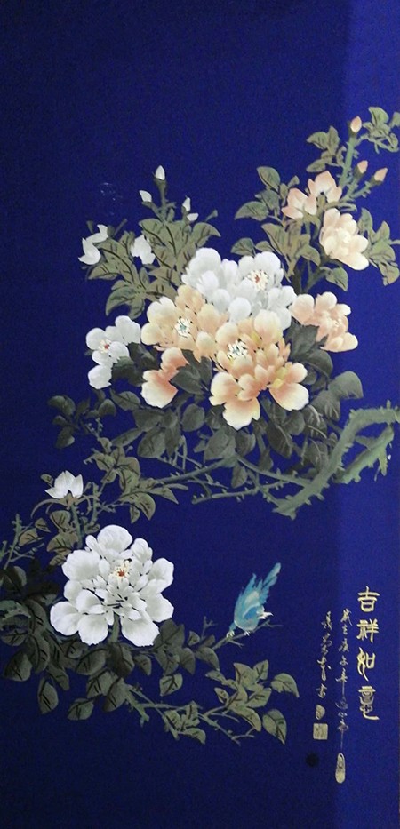 清新脱俗、富贵天香、花色大美的牡丹花成为聂兰花永恒演绎的经典,正应了“庭前芍药妖无格,池上芙蕖净少情。惟有牡丹真国色,花开时节动京城。”丰富的故事寓于画中,处处表现了花开时节的灿烂美好,洋溢着蓬勃的生命力和对生活的美好祝愿。