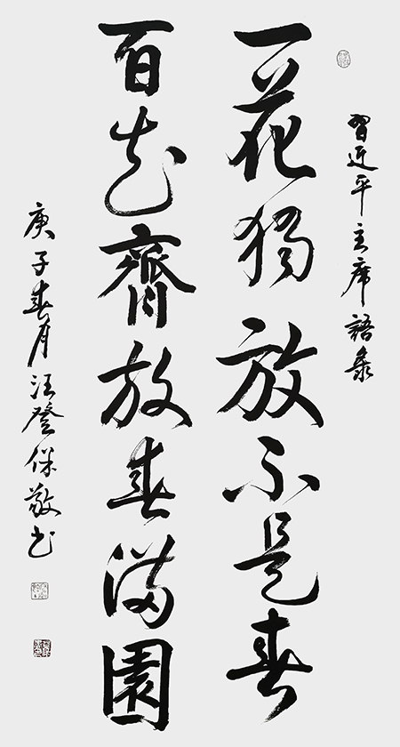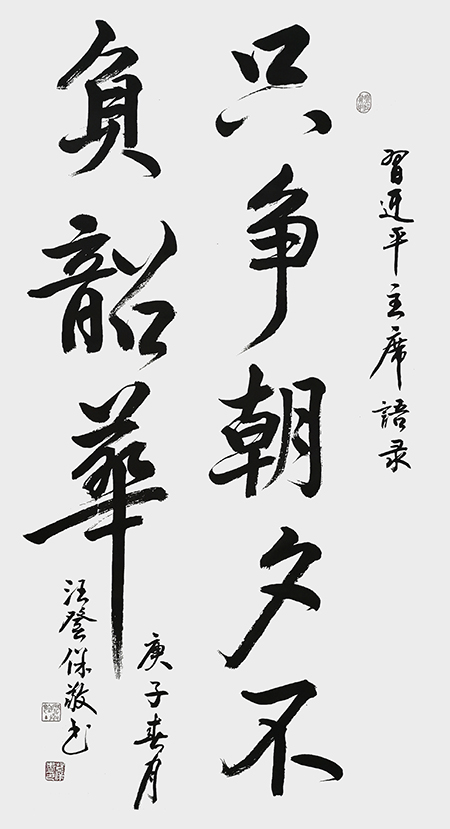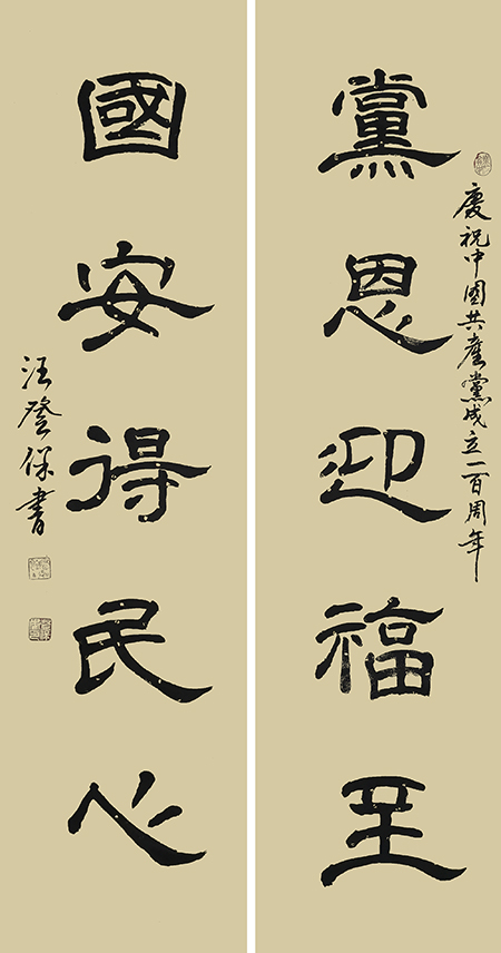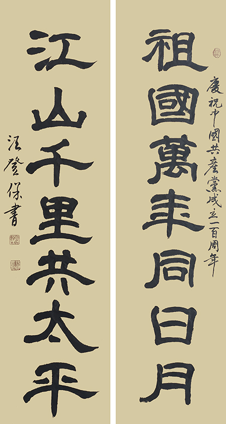 汪登保,祖籍安徽庐江县,1952年出生于宿松县洲头乡,工作于九江市。现任九江寻承艺术博物馆馆长、九江市政协常委、九江市安徽商会会长、九江市民营经济研究会会长。他从小爱好书法和收藏。现为国家一级美术师、中国书法家协会会员、中央国家机关书协会员、中国楹联学会会员、中国收藏家协会会员、中央美术学院客座教授、国家职业艺术品鉴定师、江西省大学生创新创业导师。书法作品多次向全国“两会”献礼,被人民大会堂、人民政协礼堂及国家多部门和大专院校、博物馆收藏。由天津人民美术出版社出版发行的书法“大红袍”——《中国近现代书法名家集——汪登保》2020年被中国非物质文化遗产办公室评为“中国非物质文化遗产出版物”。作品入编《当代美术史——中国书法》《中国当代书法史》等50多部权威书籍。荣获“全国学雷锋先进个人”“中国非物质文化遗产传承人物”等荣誉,并被授予奖章。2019年在“聚焦两会,我把艺术献给党”的活动中向全国人民展现优秀作品,被中国新媒体联盟和中国文化报道网评为“聚焦两会特殊贡献人物”,在建国70周年评选活动中,又被授予“人民功勋艺术家”称号,中华人民共和国建国70周年大阅兵,荣获了中共中央、国务院、中央军委颁授的“庆祝中华人民共和国成立70周年纪念章”。