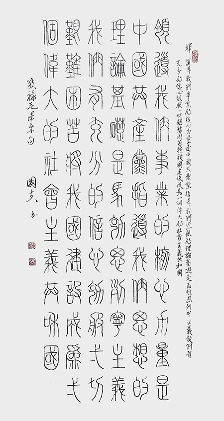 其自感乐哉,将更加努力潜心研习书法艺术的“入古”与出新。为弘扬和繁荣汉字的书法艺术,以达德艺日新,愿与同行共勉,并期方家指教。
