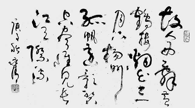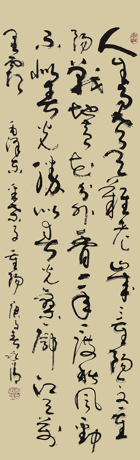 自幼酷爱书法艺术,尤热衷于临习历代书法名帖,如怀素《千字文》《自叙帖》、孙过庭《书谱》等,并以“二王”书风为创作根基,兼功诸家书之精髓,笔耕不辍,融会贯通,并形成了自己独特的书法艺术风格。