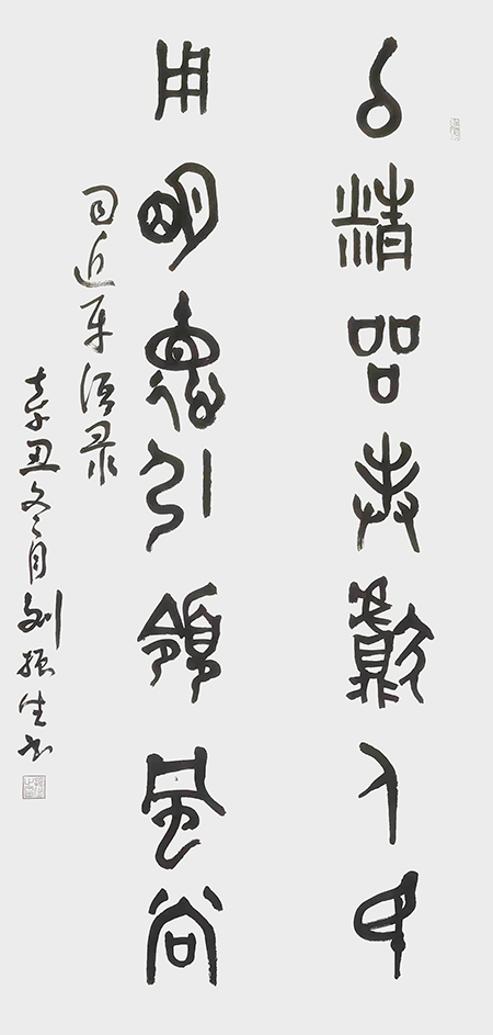 刘振生大篆书法作品被推荐参加庆祝联合国成立七十周年联合国总部书画展,同时与世界收藏家联合会、世界富豪俱乐部、中国紫光阁国礼中心三家单位签约。应原文化部中国文化艺术发展联合会、中国书画艺术促进会、美国UCT文化中心协会邀请,于2015年9月10日—24日参加了庆祝联合国成立七十周年中国名家美国纽约(联合国总部)精品书画展。于2015年9月16日至18日成功举办中国书画名家刘振生、李兰芬伉俪美国纽约(联合国)书画展。2016年9月11日参加由中国书协、中国美协在北京中华世纪坛举办的“纪念中国工农红军长征胜利80周年暨庆祝中国共产党建党95周年中央国家机关第四届职工书画摄影邀请展”。2016年10月在由原文化部文化管理中心在广西柳州召开的全国第三届企业文化年会上,被授予“书法贡献人物奖”并现场为第三届全国最美企业之声金奖歌曲获得者书写赠送书法作品。2016年11月26日在北京国家会议中心参加了庆祝长征胜利七十周年书画金奖颁奖大会,并荣获终身艺术成就奖。2017年1月2日被邀请参加中央电视台教育频道举办的“泼墨中华情——2017年度书画春晚”节目的录制。2017年3月个人创作的金文大篆书法作品《兰亭序四幅屏》被应邀参加在荣宝斋、香港、澳门、珠海等六地举办的巡回展出。个人创作的仿古拓片及书法艺术作品得到书画界的肯定;为数十家知名企业题写公司名;书法作品多次在香港、北京、上海、深圳、长春、海南、武汉、西安、郑州、兰州、云南、安徽等省市展出并获奖。被百度、搜狐、淘宝、新浪、谷歌、中国国际艺术家网、雅昌艺术网、群贤艺术网、安徽艺术网、北京宋庄上上美术馆、北京大学、香港大学、香港中文大学、香港城市大学、浙江大学、北京恋如昔文化艺术有限公司及多家美术(展览)馆、企事业单位收藏。作品润格:书法作品国内市场价每平方尺为6000——10000元人民币,国际市场价每平方尺为2000——5000美元。