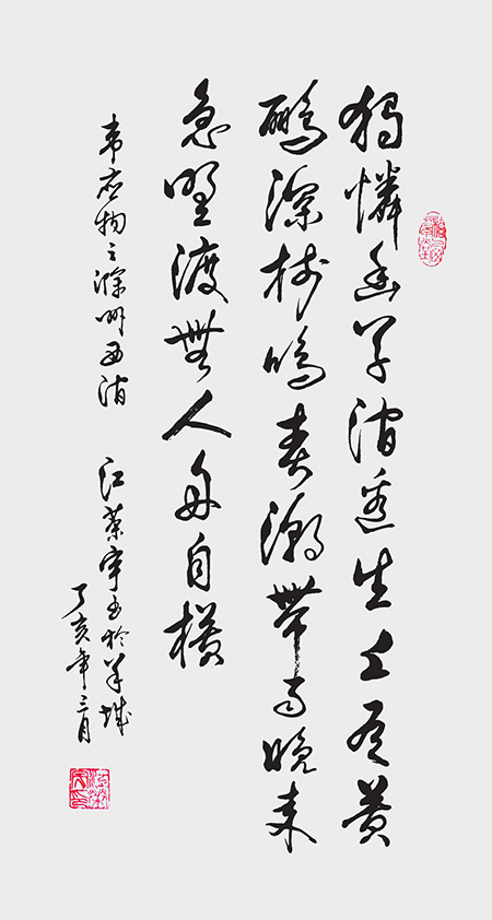江荣宇,1940年生,广州人,历任香港珠江建筑装饰集团董事长、广州珠江建筑装饰有限公司董事长、广州牧马人广告公司董事长、香港珠江书画院院长、“创意装饰”杂志社社长、广州珠江画院院长。近年来参加国内外有关展览,先后荣获金奖40多个,并被授予“当代名家”“中华杰出艺术家”“最有收藏价值艺术家”称号。