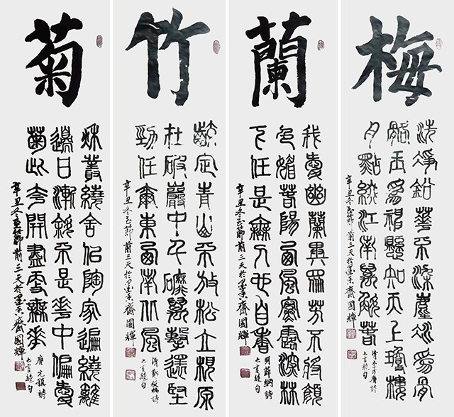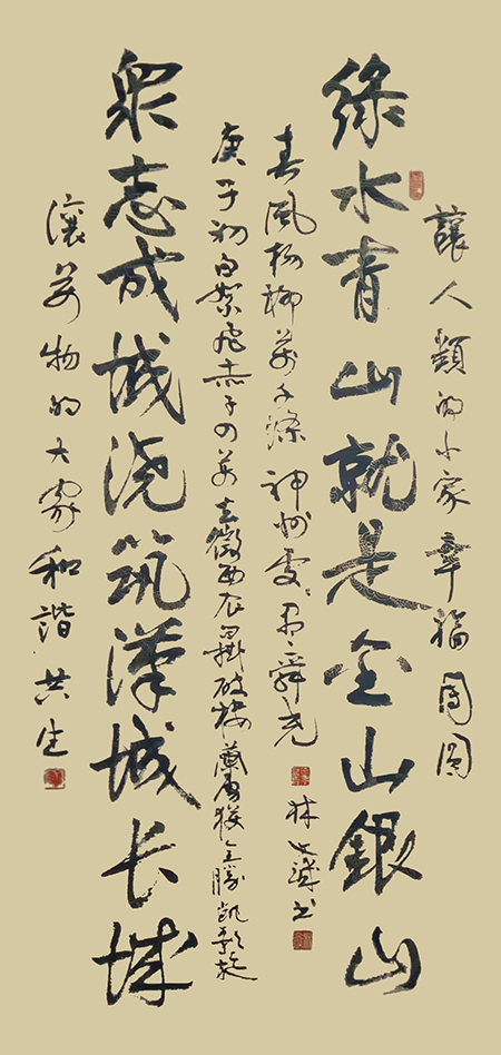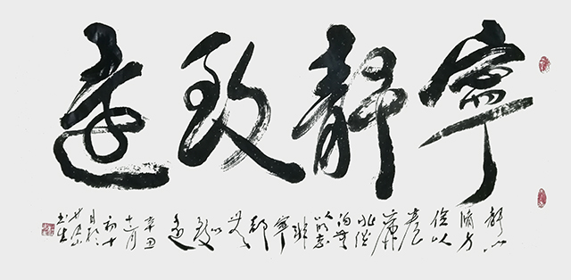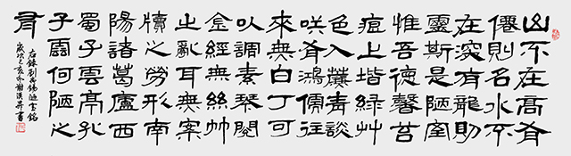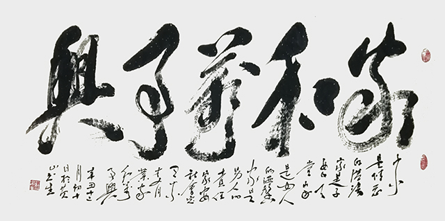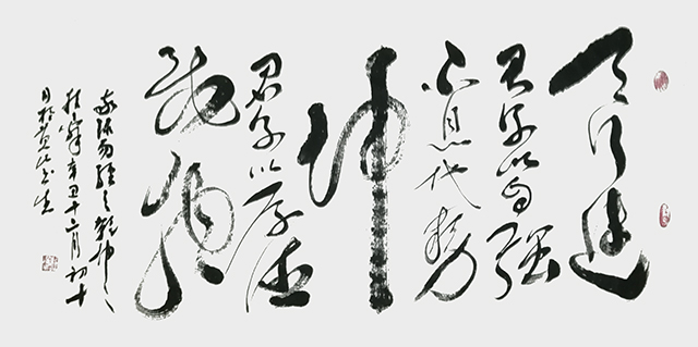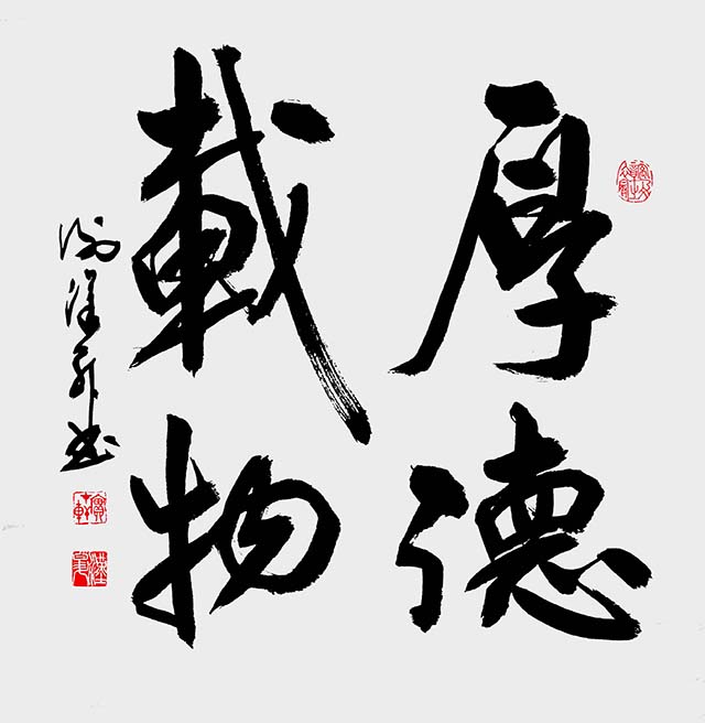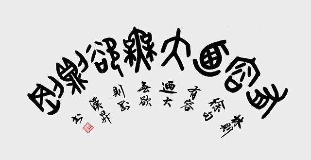 久临必有创作,其在研习临摹古碑帖的基础上,使自己的创造的作品尽可能保持古朴风韵、庄重典雅,彰显传统文化韵味和创作情趣。另一方面,寻古、仿古而不囿古,其又会结合时代特色、思想情感和文化环境进行创作。