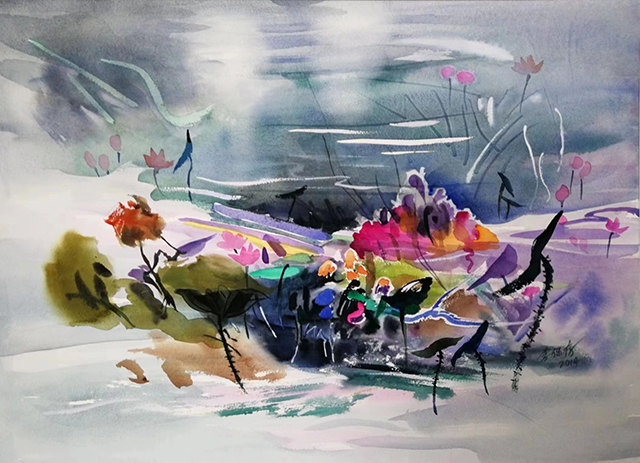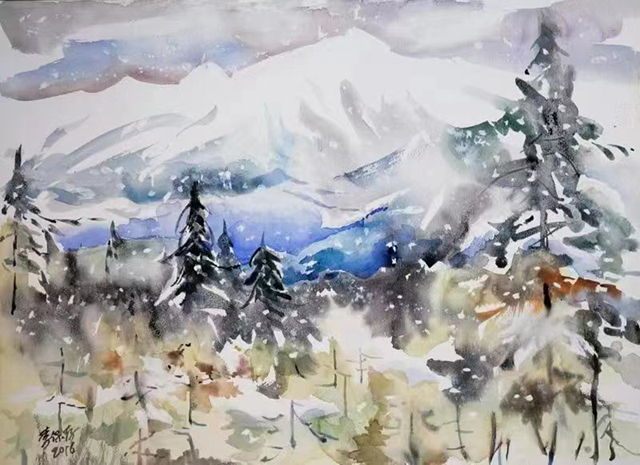 先考入中专师范,后又在美院进修,不但探索油画、素描、国画、特别是对水彩画的研究,把他引入艺术殿堂,他在这条闪光的路上出发了。