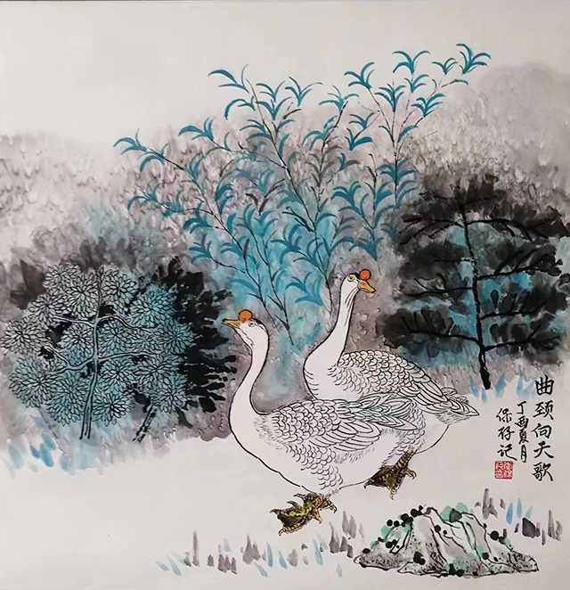 几十年来始终坚持:坚守作品力求融入自己的真实情感,以情写画,使作品真诚地面对受众;坚守一个艺术家的良心,为艺术负责,为社会负责,也是为自己负责;坚守让艺术内在的美去感染观众。正如日本名古屋国际美术馆馆长山本荣次先生看了作品后评价:“0作品让人有种直接亲近感,无论哪幅作品都有一个共同的地方,就是具有一种豪爽流畅的美丽感。”