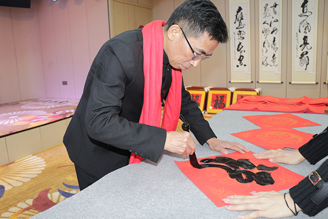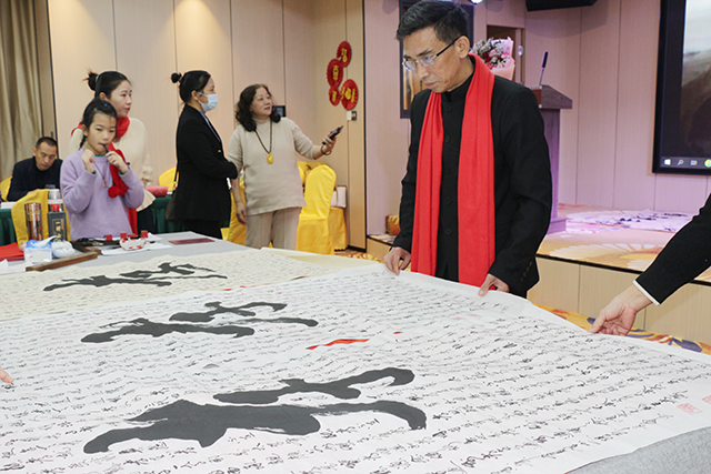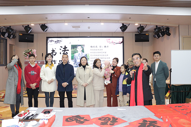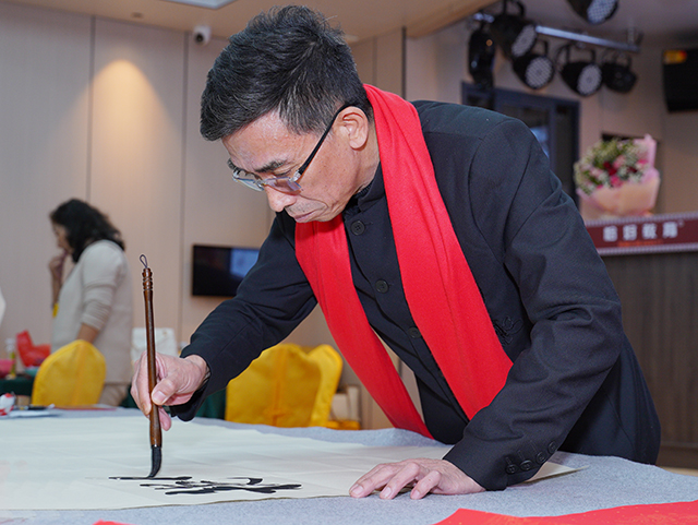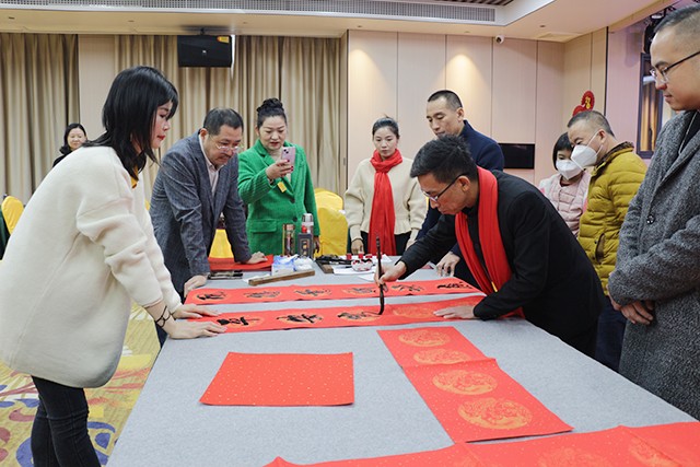 临近春节,梅廷虎先生在展览现场与嘉宾朋友亲切交流互动,并挥毫泼墨,为大家书写春联福字,以翰墨营造喜庆气氛,丰富文化生活,给现场宾朋带来美好的节日祝福。