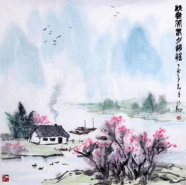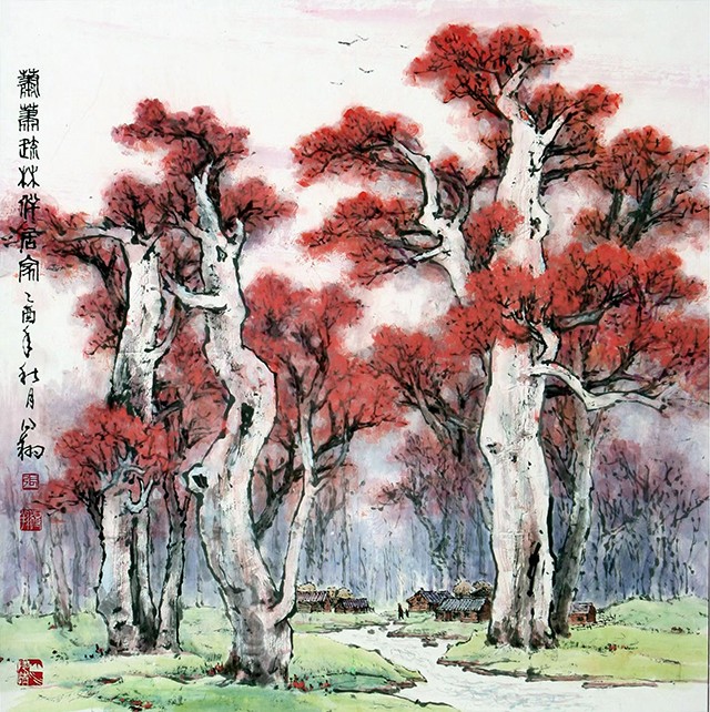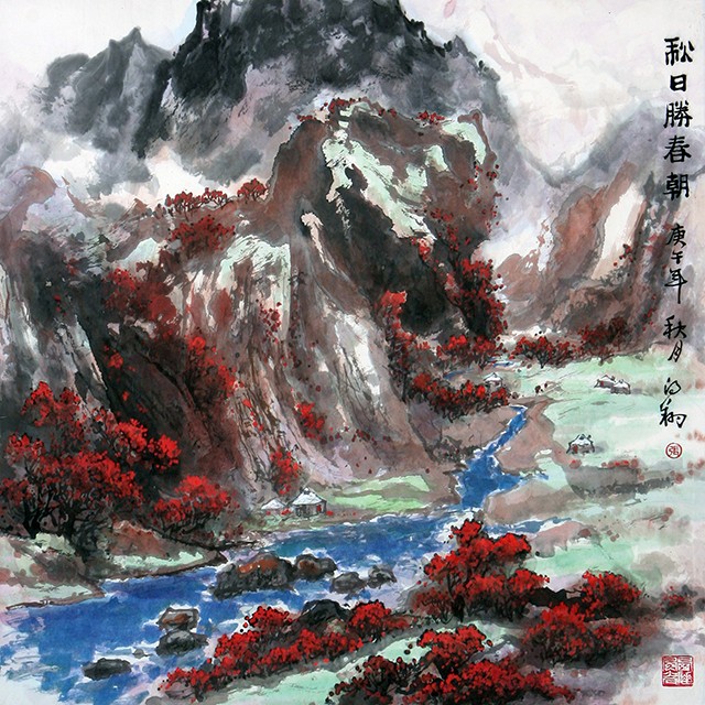 张得翔作品《探亲秋山中》90㎝×90㎝ 2010年