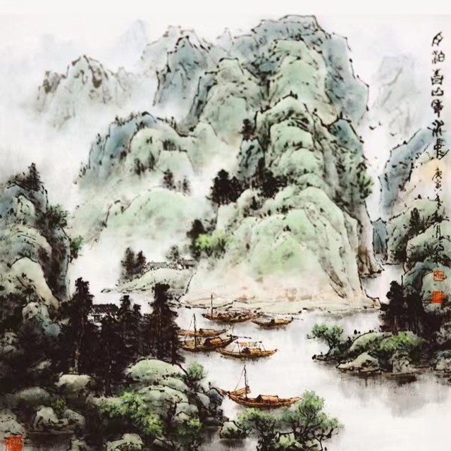 1984年,由老师李可染、陶一清两位教授共同推荐,军区领导批准其与他人合作,历经三年为国家创作、绘制完成了大幅青绿山水画《圆明园全景图》。